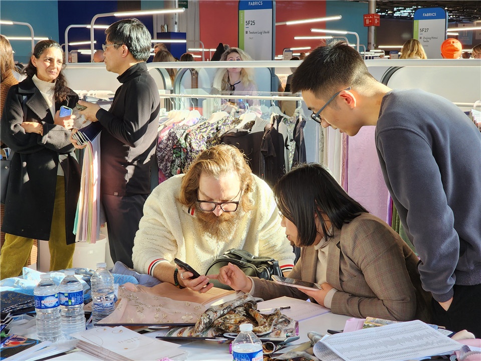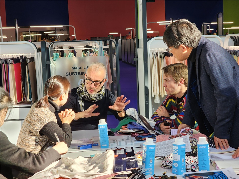 更值得一提的是,這次我們所帶的產品有大量的絲綢類高端新產品,契合春夏季高端客人對產品的需求,這些產品中90%以上是含有環保元素的,與當前紡織產品可持續環保理念相符。理念與設計的碰撞,讓本次參展產品中的8款產品被組委會專家團隊選為流行趨勢樣本產品。